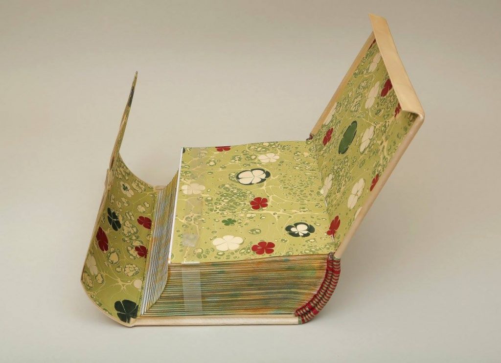 Rankų darbo marmurinio popieriaus lakštai naudojami knygų puošyboje: