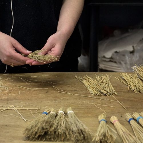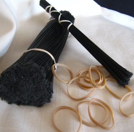 Taip pat nemažai meistrų naudoja ryžių stiebelių ryšulėlius. Jie gali būti storesni bei plonesni, priklausomai prie kokio dydžio indo dirba meistras. Jų pagrindinis privalumas – žema kaina, geras pasiekiamumas ir žinoma ekologija, tačiau jie gali trupėti, pačiu nepalankiausiu mums metu. Šiandienos meistrai, o ypač tie, kurie dirba su akrilu ir cheminėmis marmuravimo medžiagomis, naudoja tos pačios konstrukcijos plastikines šluoteles (šepetėlius). Jie atsparesni neigiamam medžiagų poveikiui, tad tarnauja daug ilgiau.